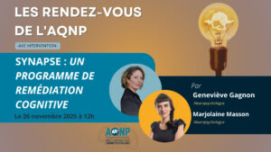 Contexte théorique : La situation actuelle au Québec correspond au statu quo en termes d’intervention cognitive. Autrement dit, il n’y a pas de réglementation, pas de définition officielle, pas de formation, ni d’acte réservé. Selon un sondage réalisé auprès d’institutions hospitalières américaines (Stringer, 2003), l’intervention cognitive (quel qu’en soit le type) est principalement offerte par les orthophonistes et les ergothérapeutes, les neuropsychologues n’arrivant qu’en troisième position. À notre connaissance, trop peu de neuropsychologues pratiquent la « remédiation cognitive » dans le cadre d’un processus de psychothérapie ou pratiquent le suivi en neuropsychologie. Peu de neuropsychologues mettent en pratique la relation musculaire progressive, la respiration profonde. De plus, peu d’interventions en neuropsychologie ont une visée de prévention cognitive en utilisant les techniques d’entrevue motivationnelle ou de restructuration cognitive. Au cours de cette formation, nous parlerons du concept de remédiation cognitive au sens large puis nous prendrons l’exemple concret d’un programme développé pour des personnes ayant des plaintes subjectives de la mémoire. Un de nos objectifs est de former d’autres professionnels cliniciens à intégrer la remédiation cognitive compensatoire à leur travail de neuropsychologie ou de psychothérapie. L’approche utilisée est validée scientifiquement aux États-Unis, traduit et adapté au Québec et a pour but d’aider les personnes en début de vieillissement à mieux gérer l’impact de leurs difficultés cognitives au quotidien via une variété de stratégies et d’aides externes pour aider chaque personne ayant des plaintes au niveau de la mémoire, de l’attention, de l’organisation, de la résolution de problème ou encore de la planification. Il s’agit d’un programme qui peut aisément être implémenté en clinique et qui incorpore des techniques multimodales. Ce programme vise une amélioration du fonctionnement cognitif et fonctionnel, en passant entre autres par l’identification des facteurs de protection et une réduction des facteurs de risque du déclin cognitif. Le « manuel de l’intervenant » sera offert à chaque participant à la formation.